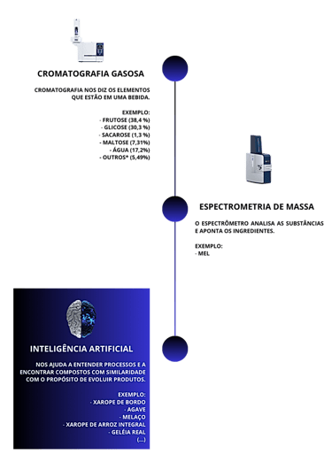 Nosso processo de desenvolvimento de produtos utiliza cromatografia gasosa, espectrometria de massa e inteligência artificial generativa.
